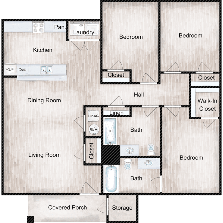At Forest Bend in Madison, TN, we offer spacious three-bedroom townhomes and apartments for rent that are thoughtfully designed with modern features. Each home includes an in-home washer and dryer, making everyday chores more manageable. Ceiling fans, laminate flooring, and walk-in closets create a stylish and functional space to suit your daily needs. Visit us today to explore the comfort and convenience of renting our homes.